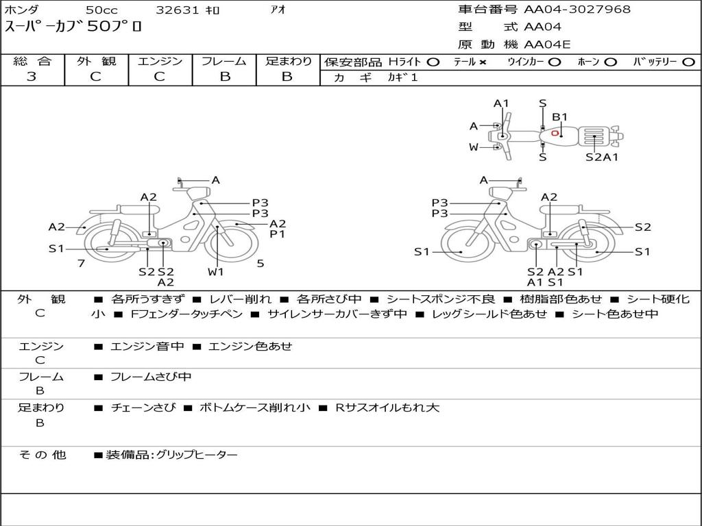 | Номер рамы / VIN | AA04-3027968 |