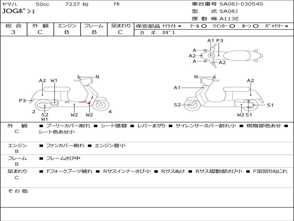 | Номер рамы / VIN | SA08J-030540 |
