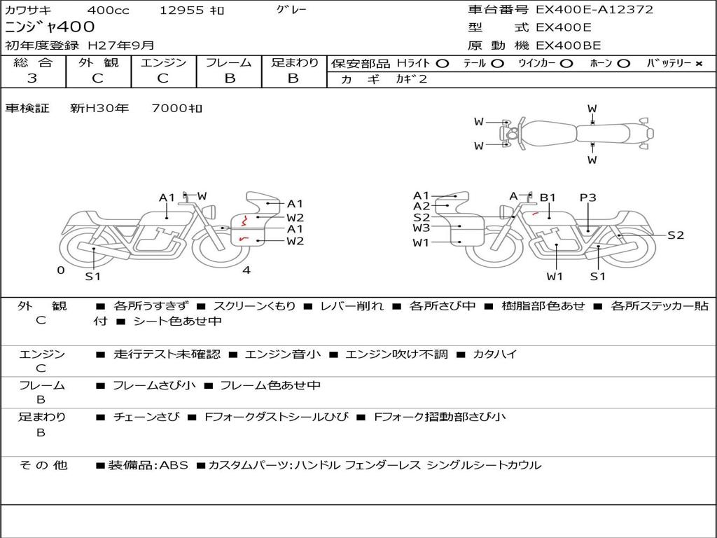 | Номер рамы / VIN | EX400E-A12372 |