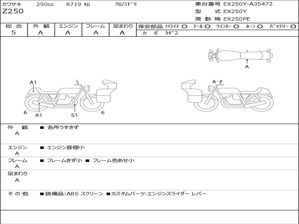 | Номер рамы / VIN | EX250Y-A35472 |