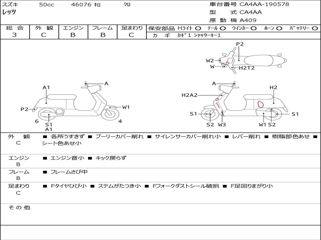 | Номер рамы / VIN | CA4AA-190578 |