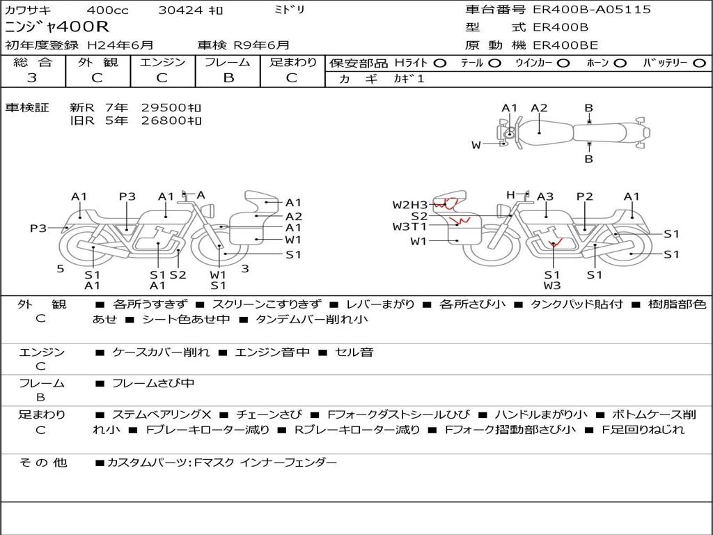 | Номер рамы / VIN | ER400B-A05115 |