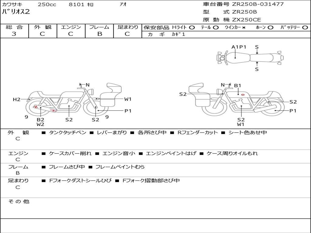 | Номер рамы / VIN | ZR250B-031477 |