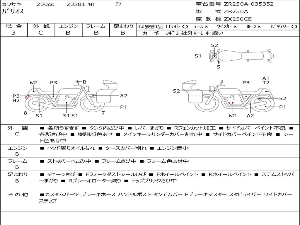 | Номер рамы / VIN | ZR250A-035352 |