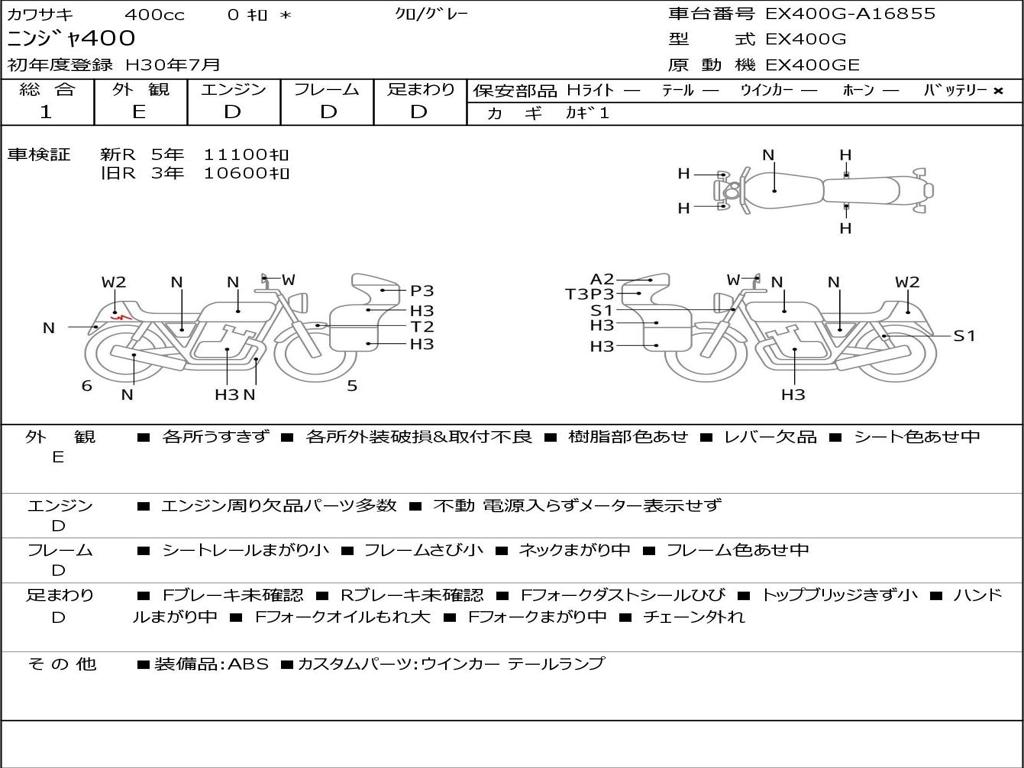 | Номер рамы / VIN | EX400G-A16855 |
