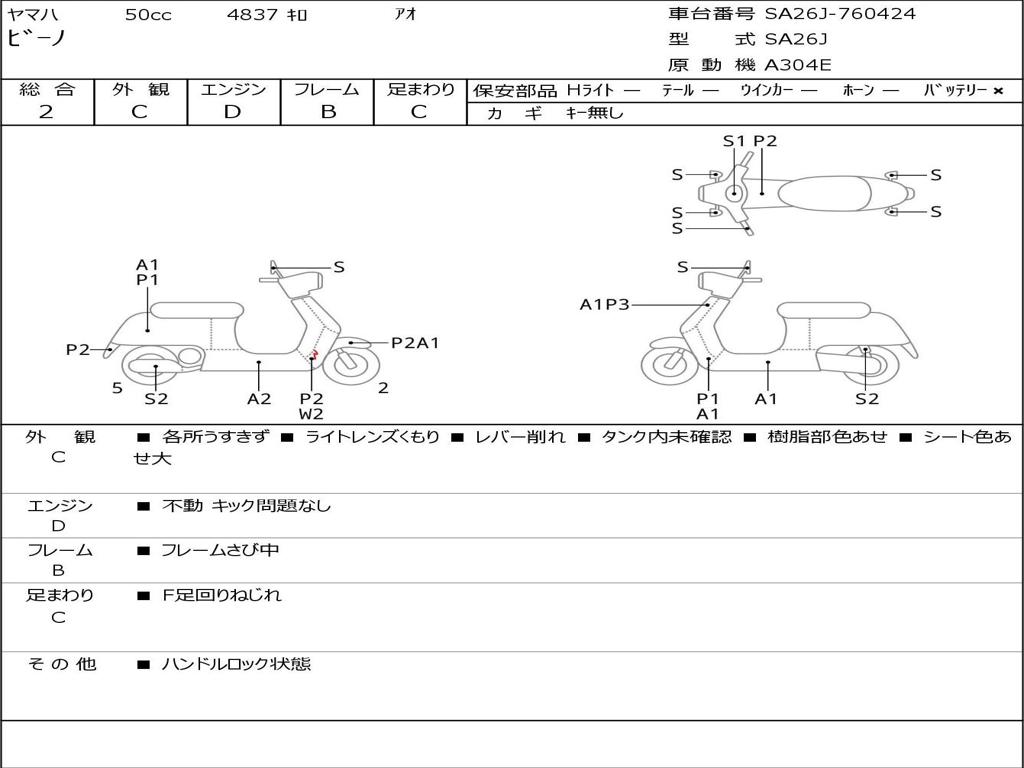 | Номер рамы / VIN | SA26J-760424 |