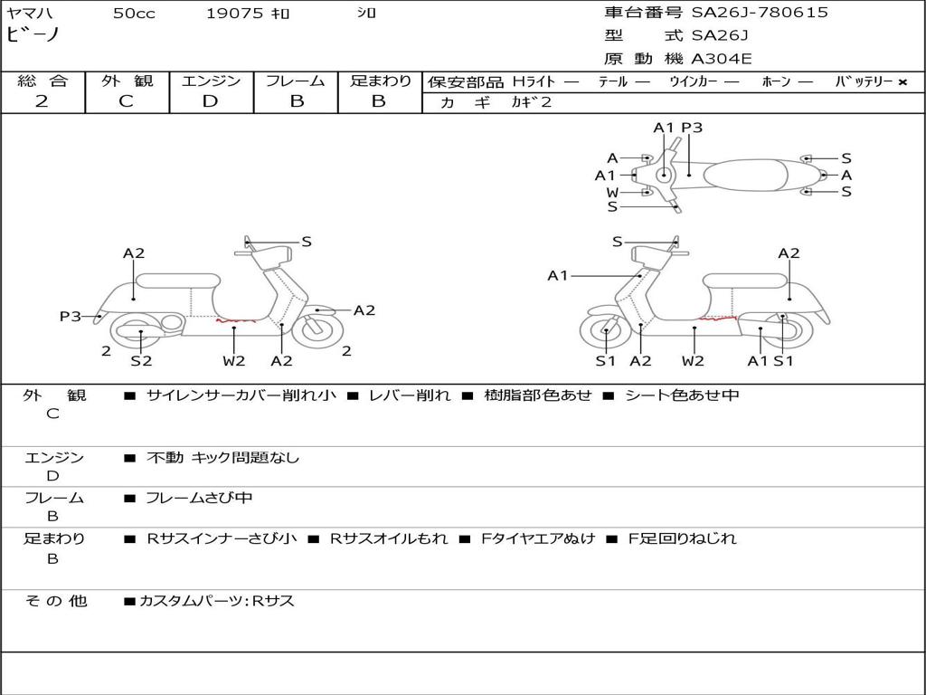| Номер рамы / VIN | SA26J-780615 |