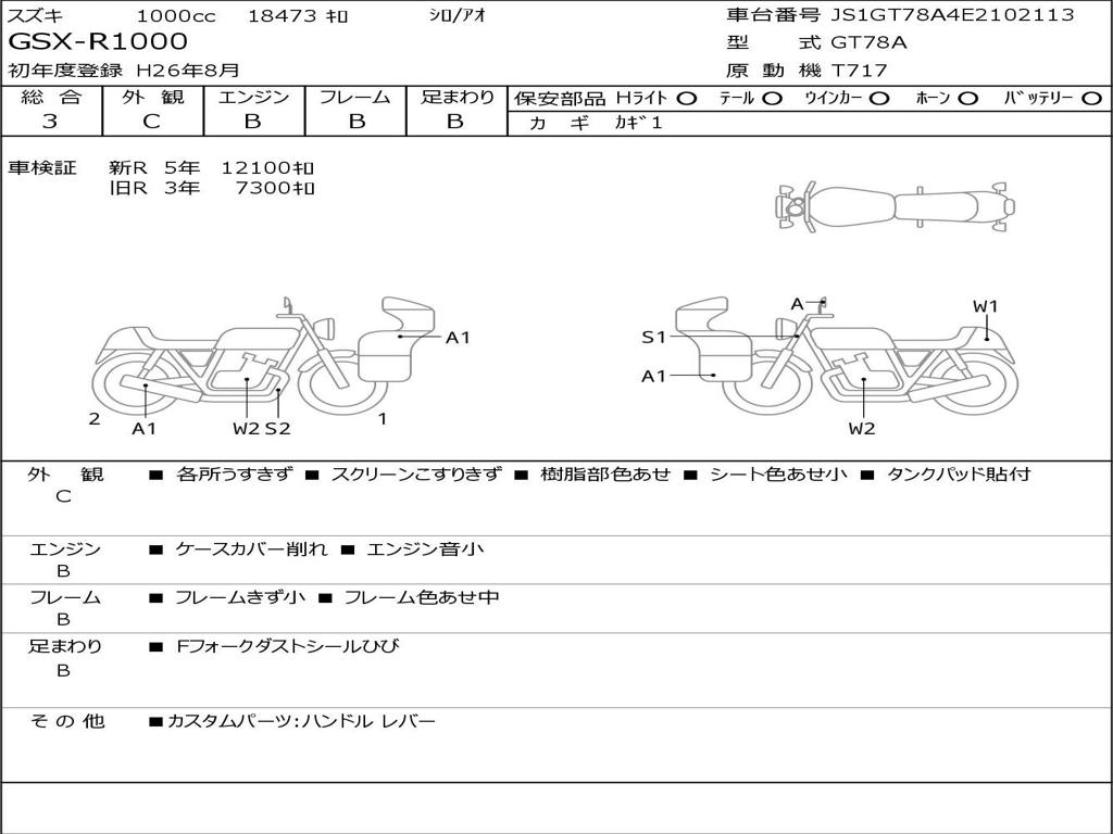 | Номер рамы / VIN | JS1GT78A4E2102113 |
