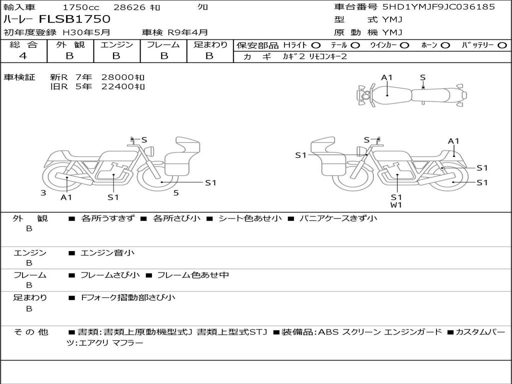 | Номер рамы / VIN | 5HD1YMJF9JC036185 |