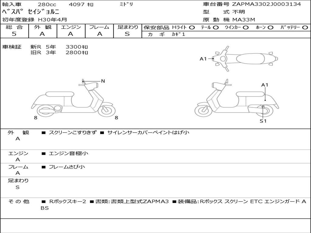 | Номер рамы / VIN | ZAPMA3302J0003134 |