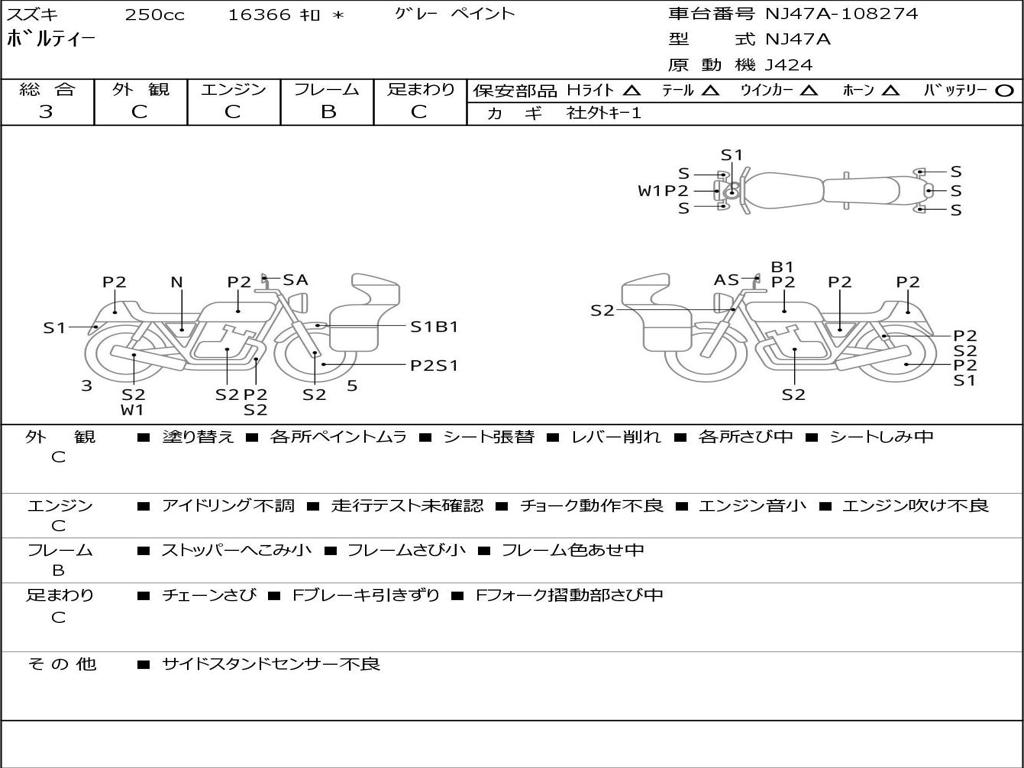 | Номер рамы / VIN | NJ47A-108274 |
