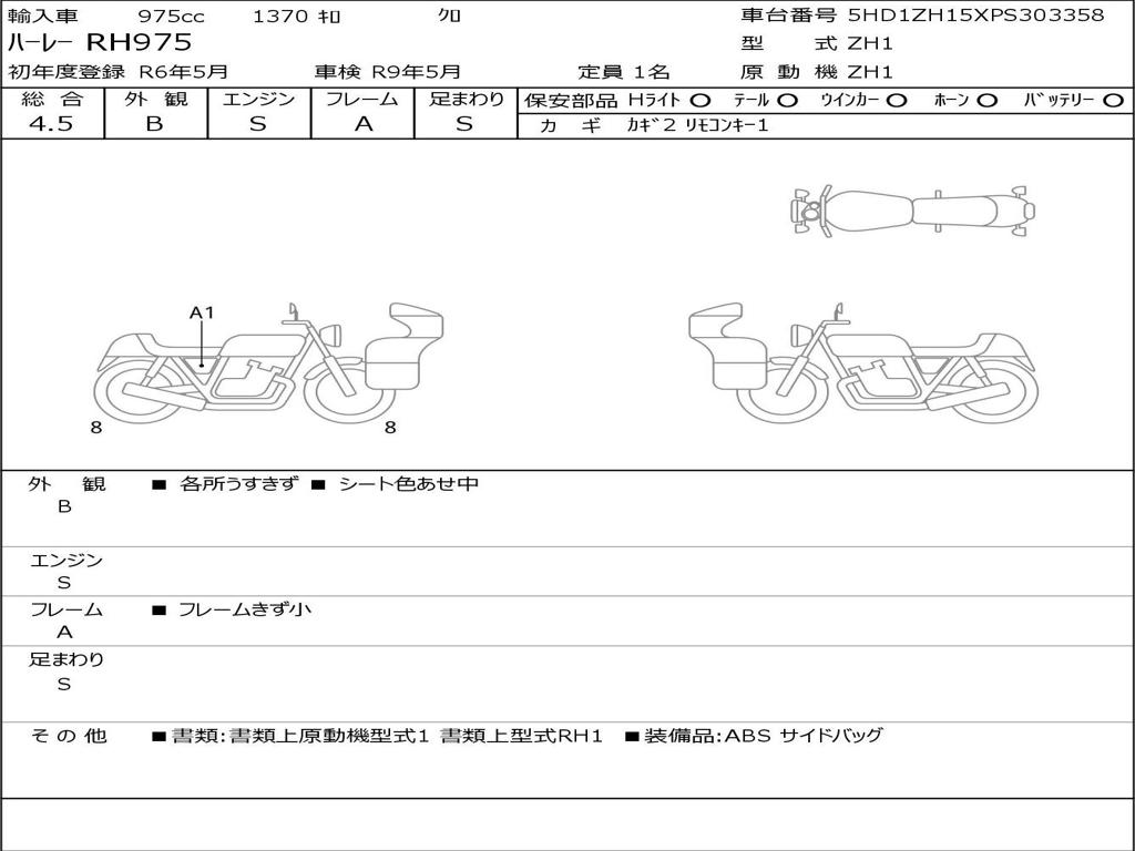 | Номер рамы / VIN | 5HD1ZH15XPS303358 |