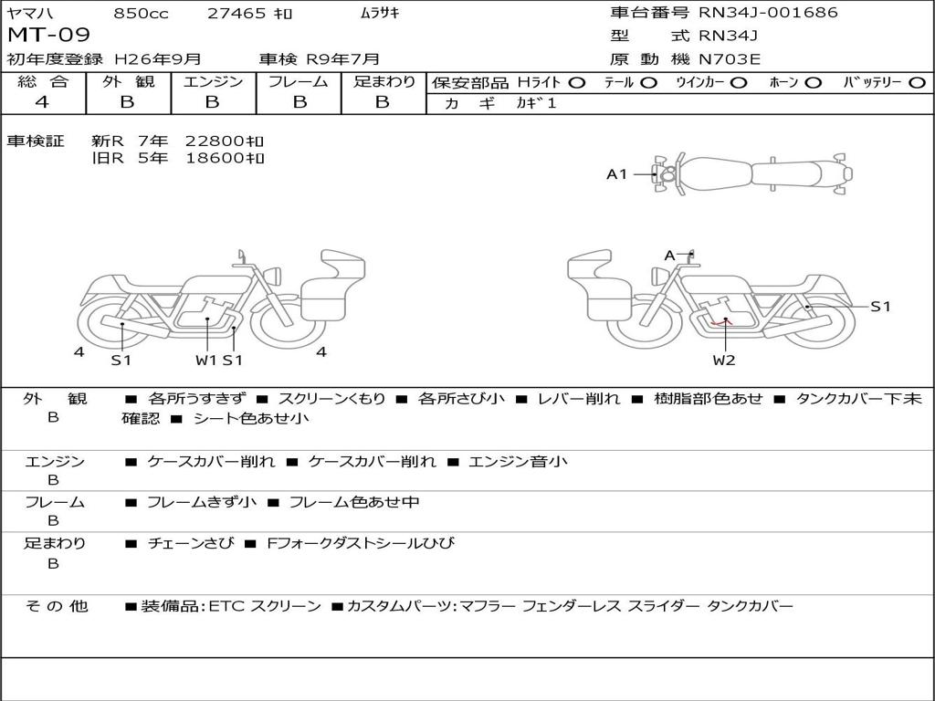| Номер рамы / VIN | RN34J-001686 |