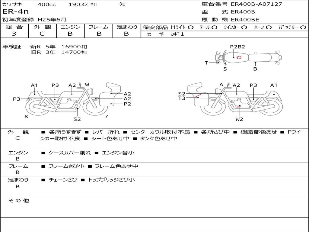 | Номер рамы / VIN | ER400B-A07127 |