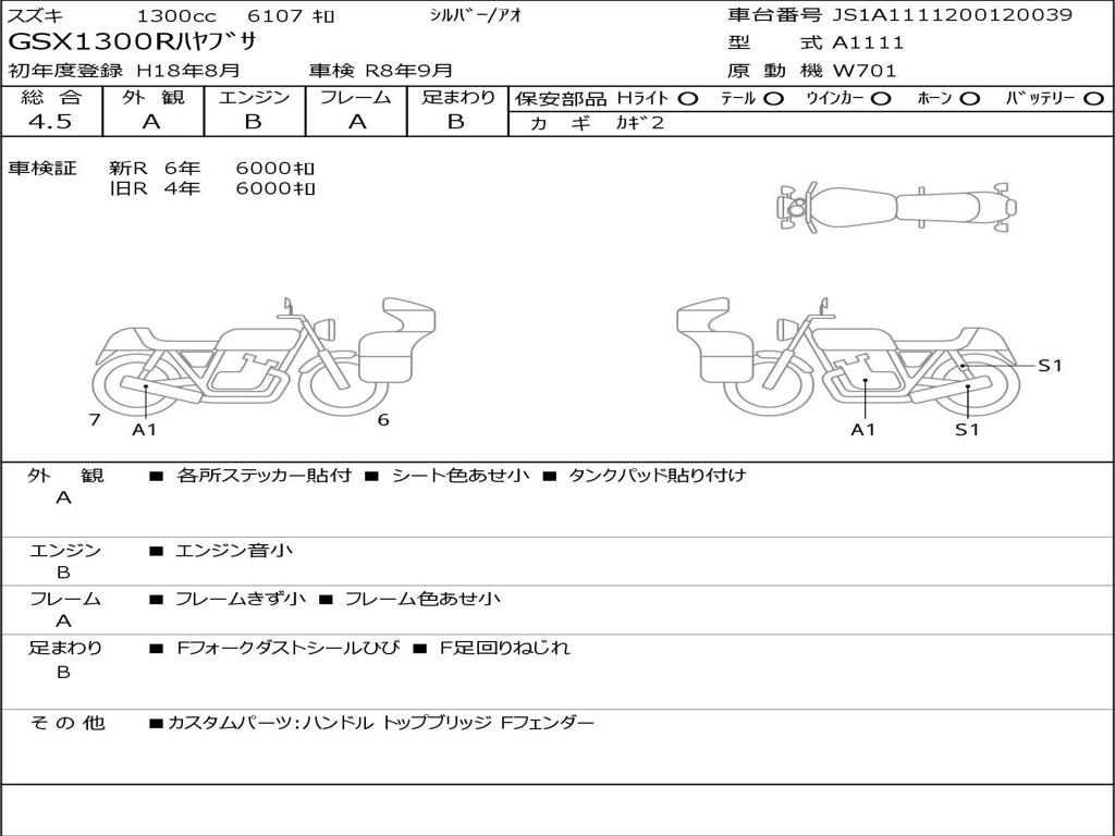 | Номер рамы / VIN | JS1A1111200120039 |