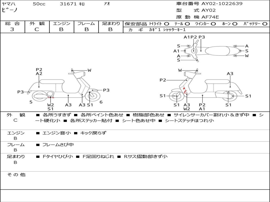 | Номер рамы / VIN | AY02-1022639 |