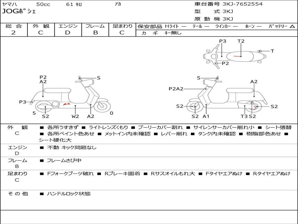 | Номер рамы / VIN | 3KJ-7652554 |