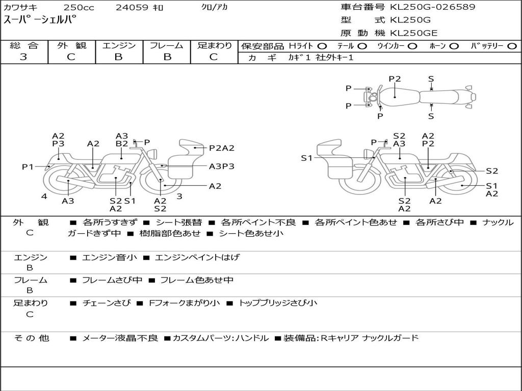 | Номер рамы / VIN | KL250G-026589 |