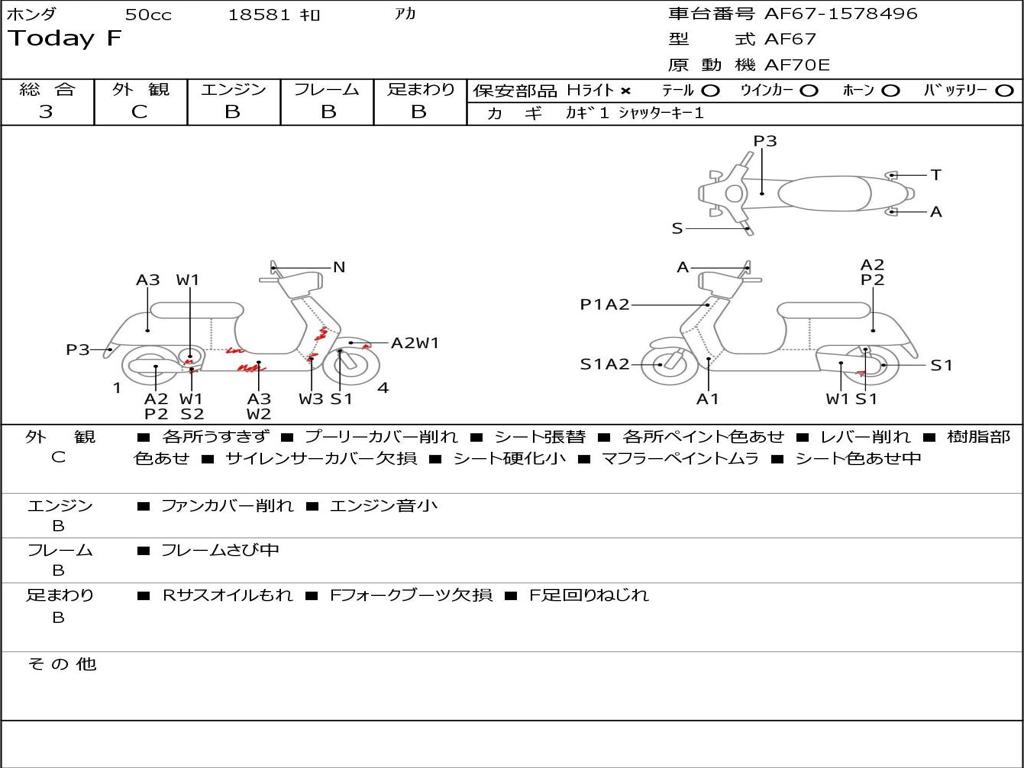 | Номер рамы / VIN | AF67-1578496 |