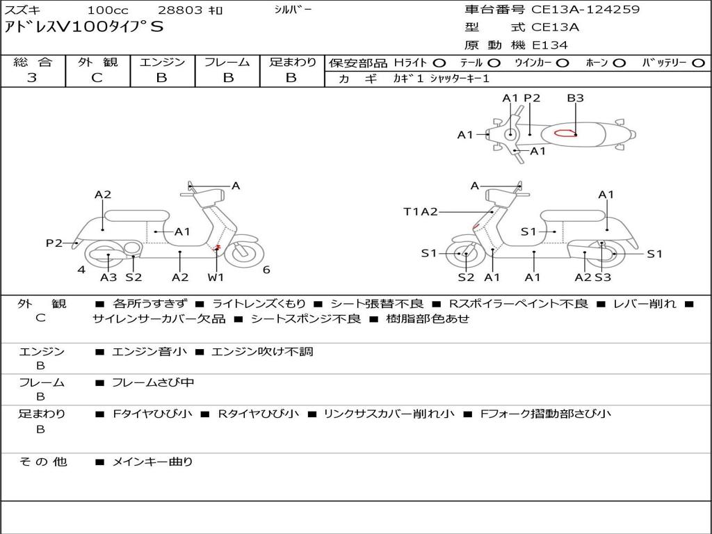 | Номер рамы / VIN | CE13A-124259 |