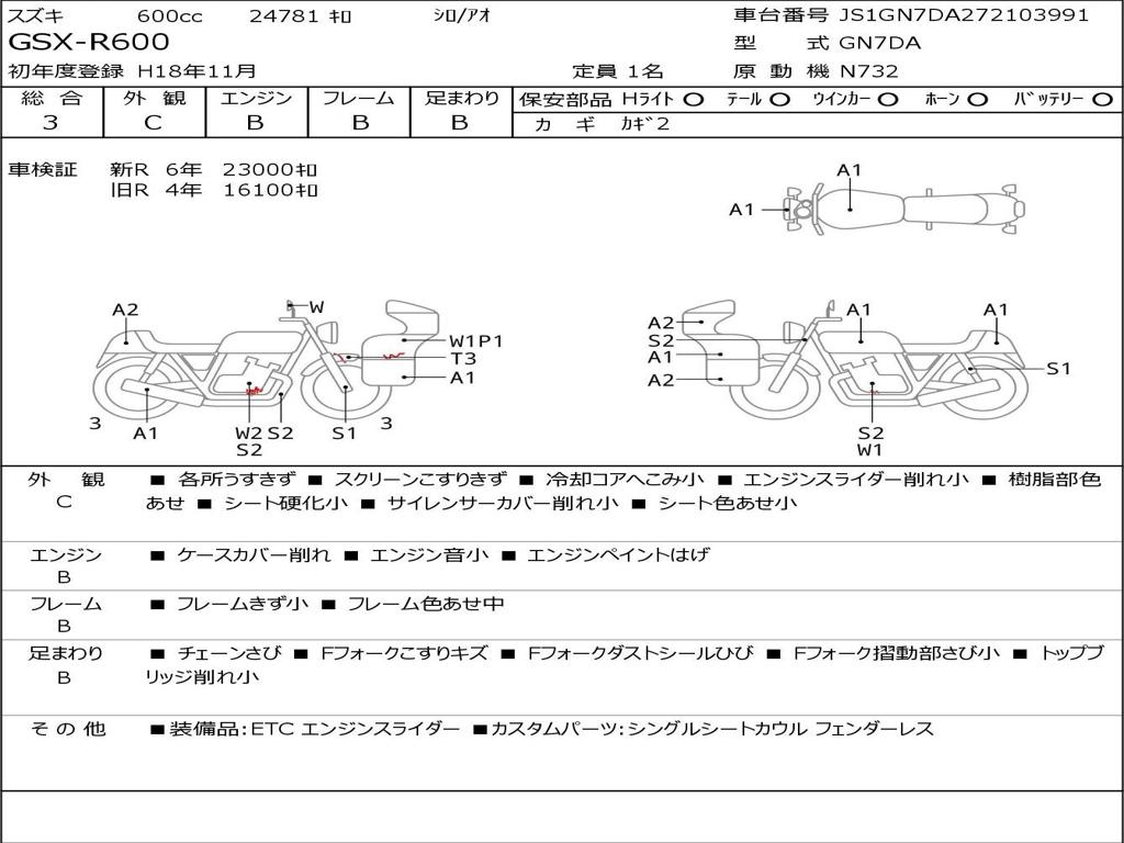 | Номер рамы / VIN | JS1GN7DA272103991 |