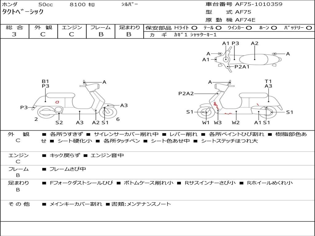 | Номер рамы / VIN | AF75-1010359 |