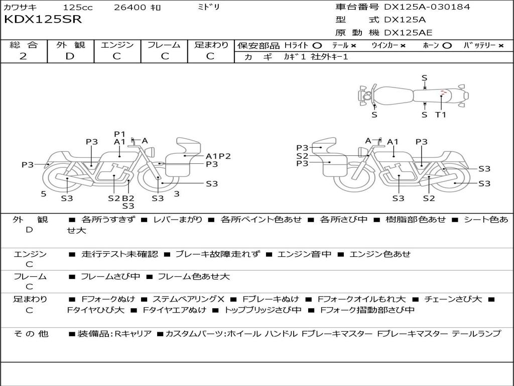 | Номер рамы / VIN | DX125A-030184 |