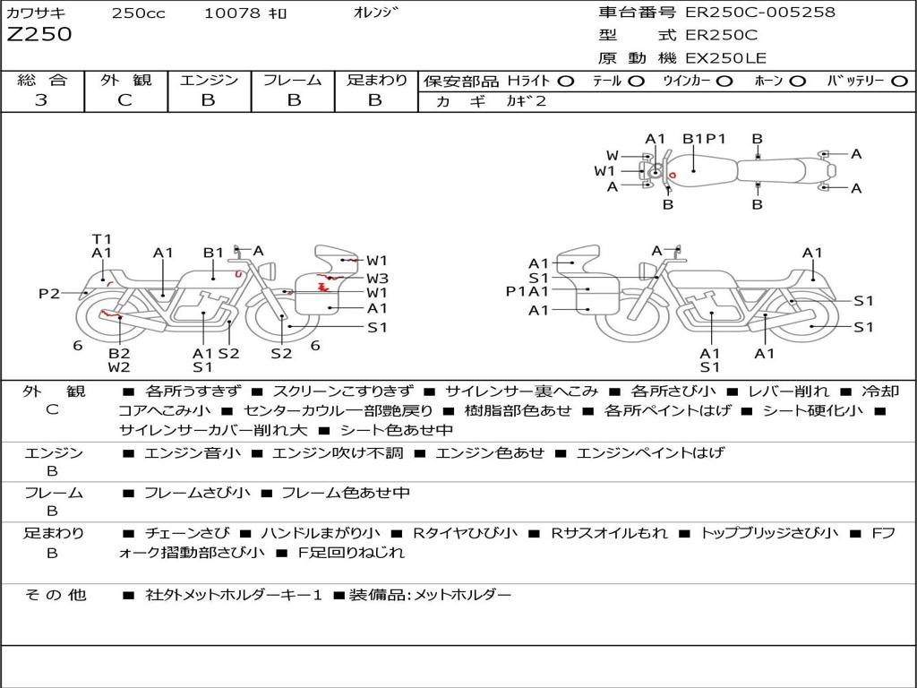 | Номер рамы / VIN | ER250C-005258 |