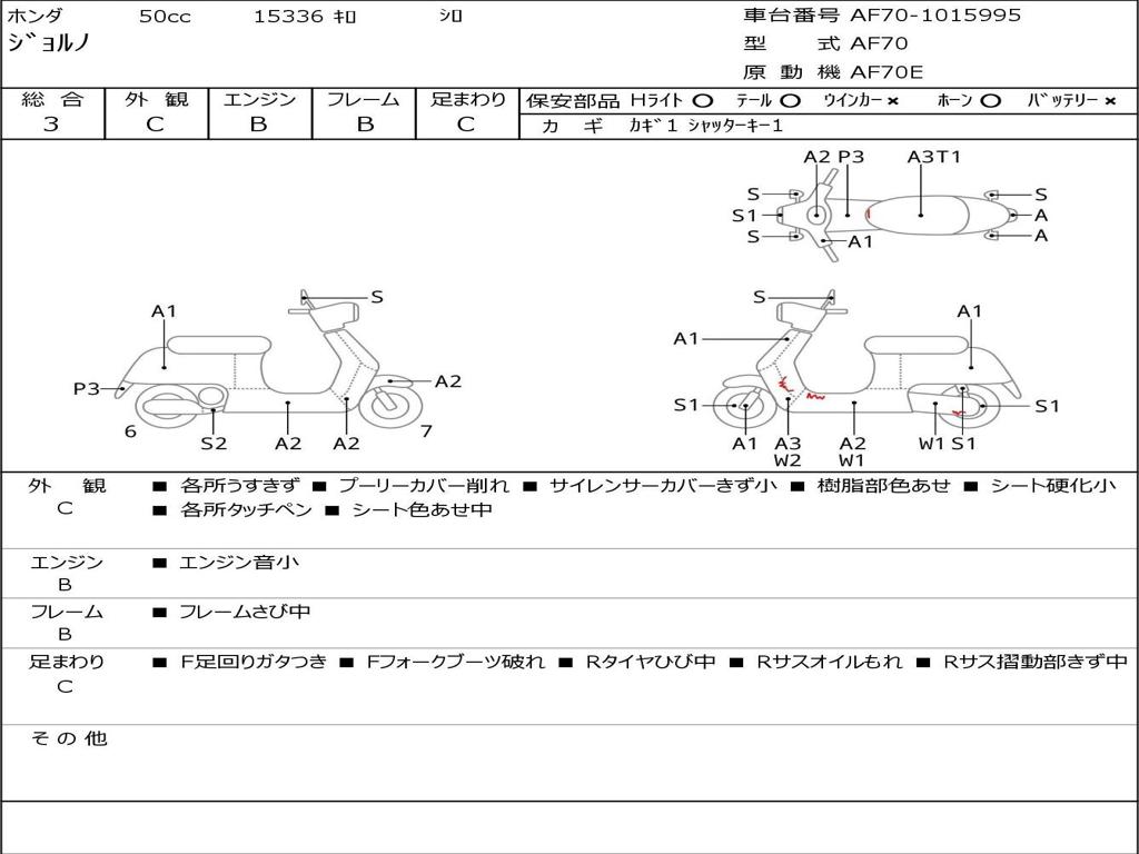 | Номер рамы / VIN | AF70-1015995 |