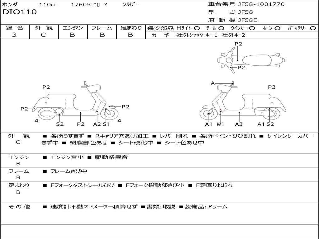 | Номер рамы / VIN | JF58-1001770 |