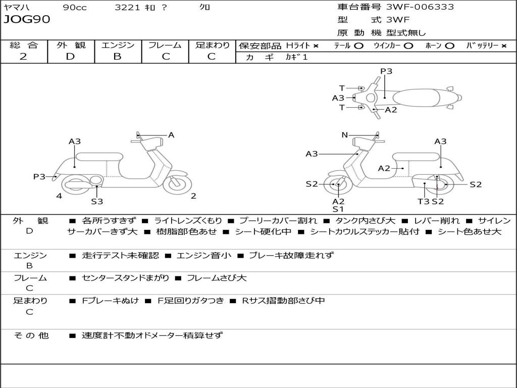 | Номер рамы / VIN | 3WF-006333 |
