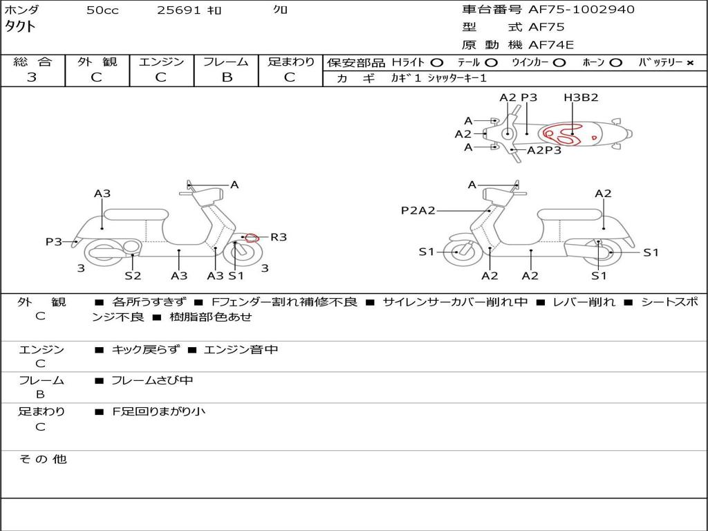 | Номер рамы / VIN | AF75-1002940 |