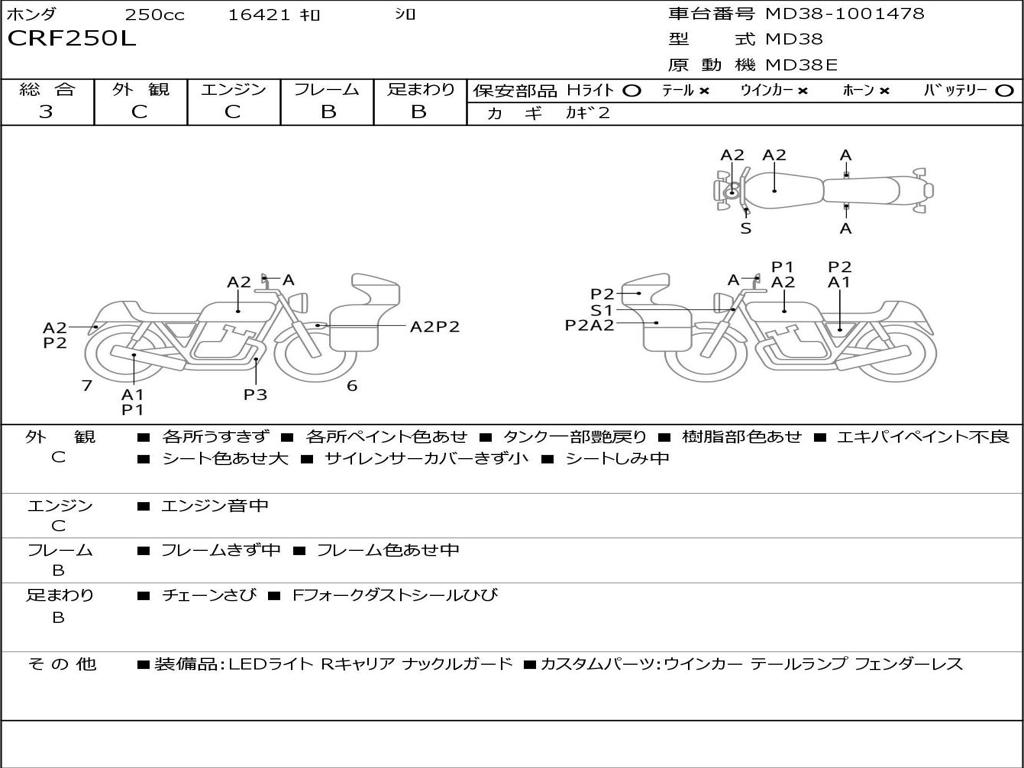 | Номер рамы / VIN | MD38-1001478 |
