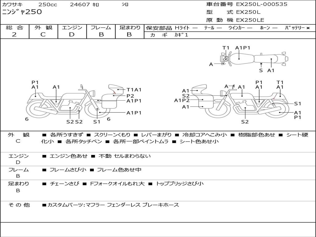 | Номер рамы / VIN | EX250L-000535 |