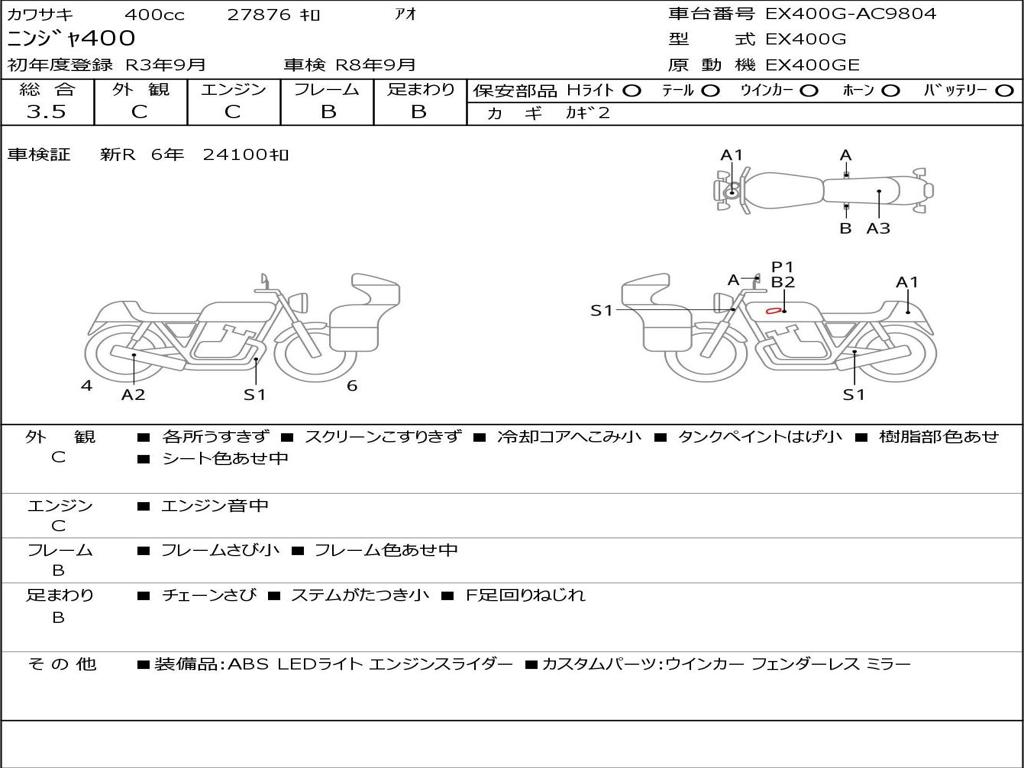 | Номер рамы / VIN | EX400G-AC9804 |