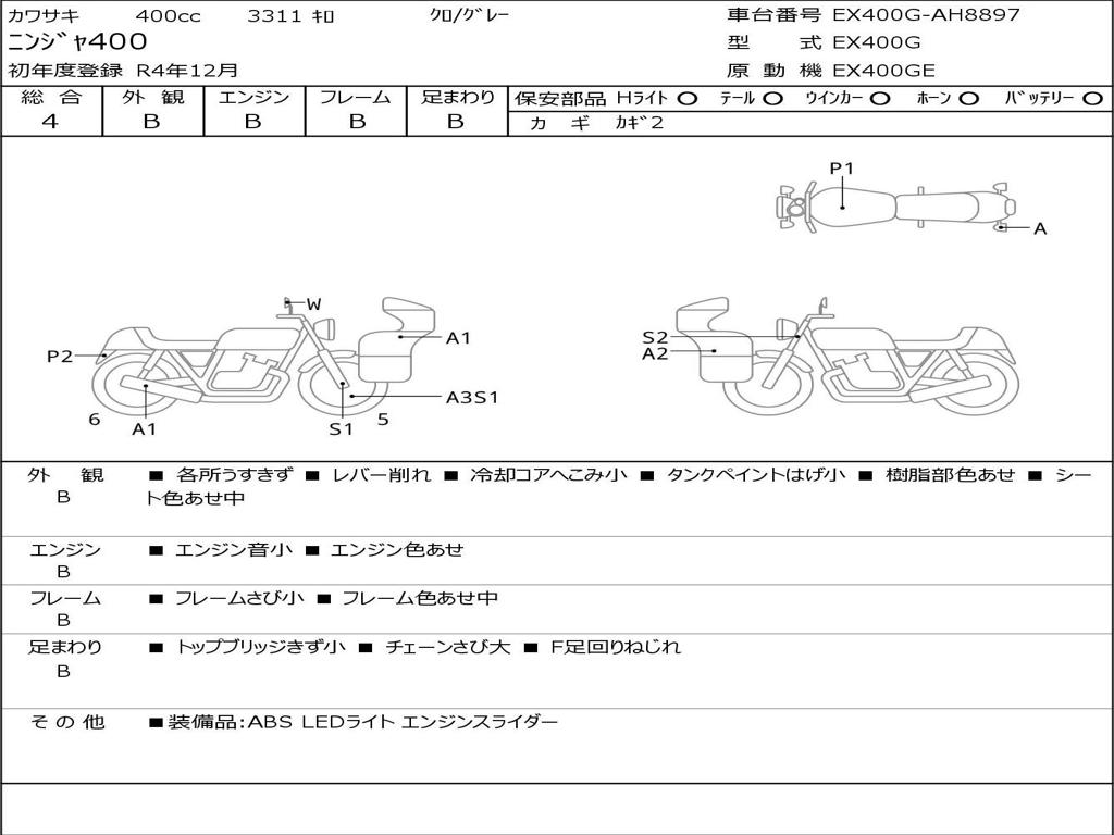 | Номер рамы / VIN | EX400G-AH8897 |