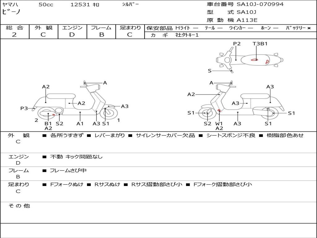 | Номер рамы / VIN | SA10J-070994 |