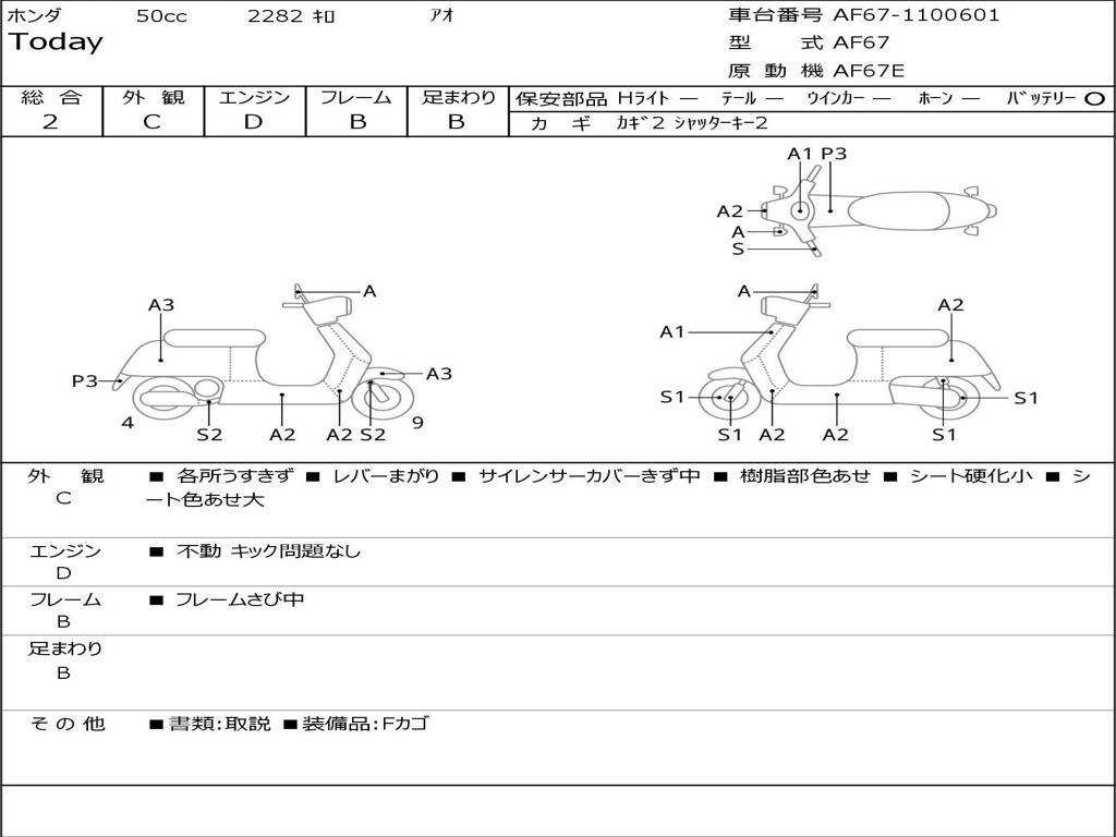 | Номер рамы / VIN | AF67-1100601 |