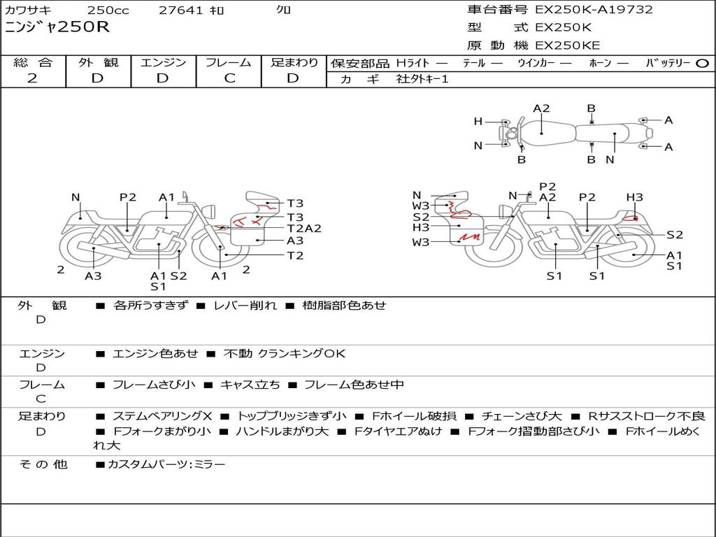 | Номер рамы / VIN | EX250K-A19732 |