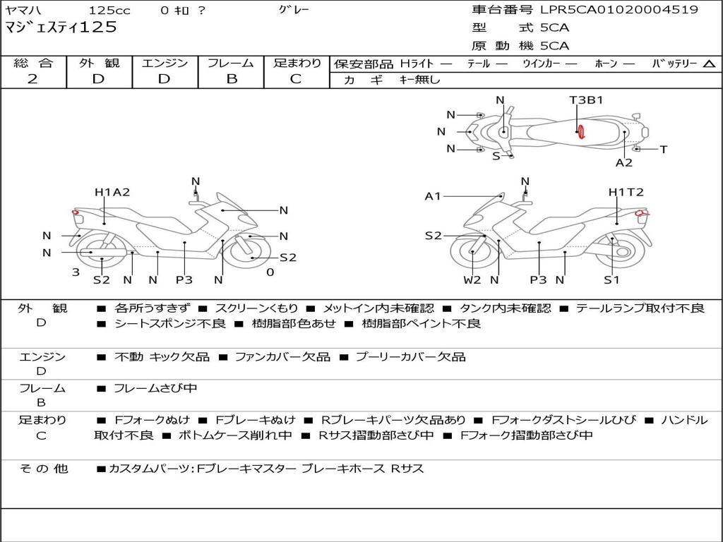 | Номер рамы / VIN | LPR5CA01020004519 |