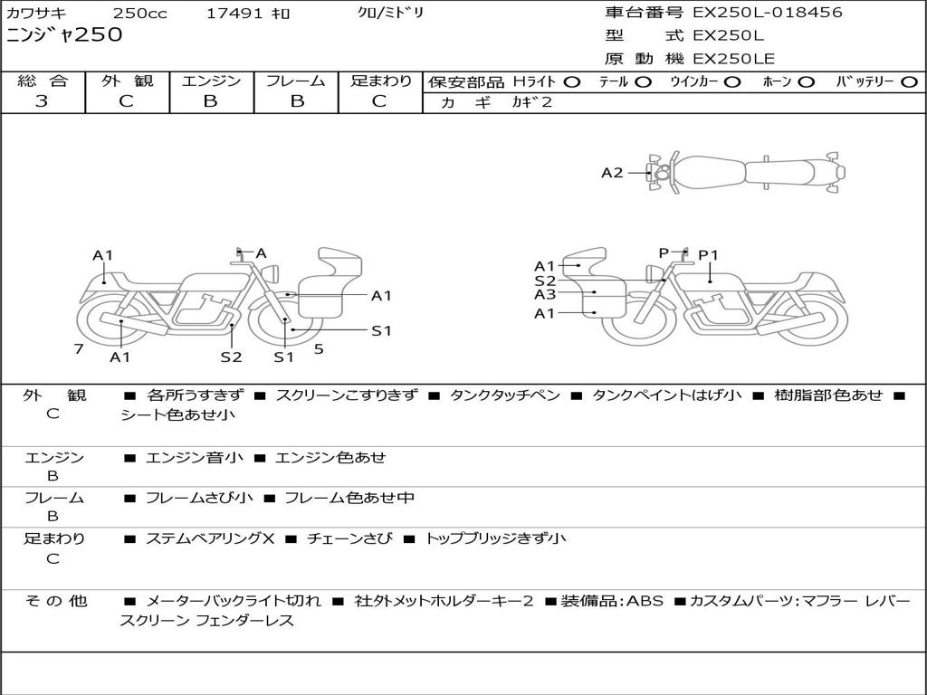 | Номер рамы / VIN | EX250L-018456 |