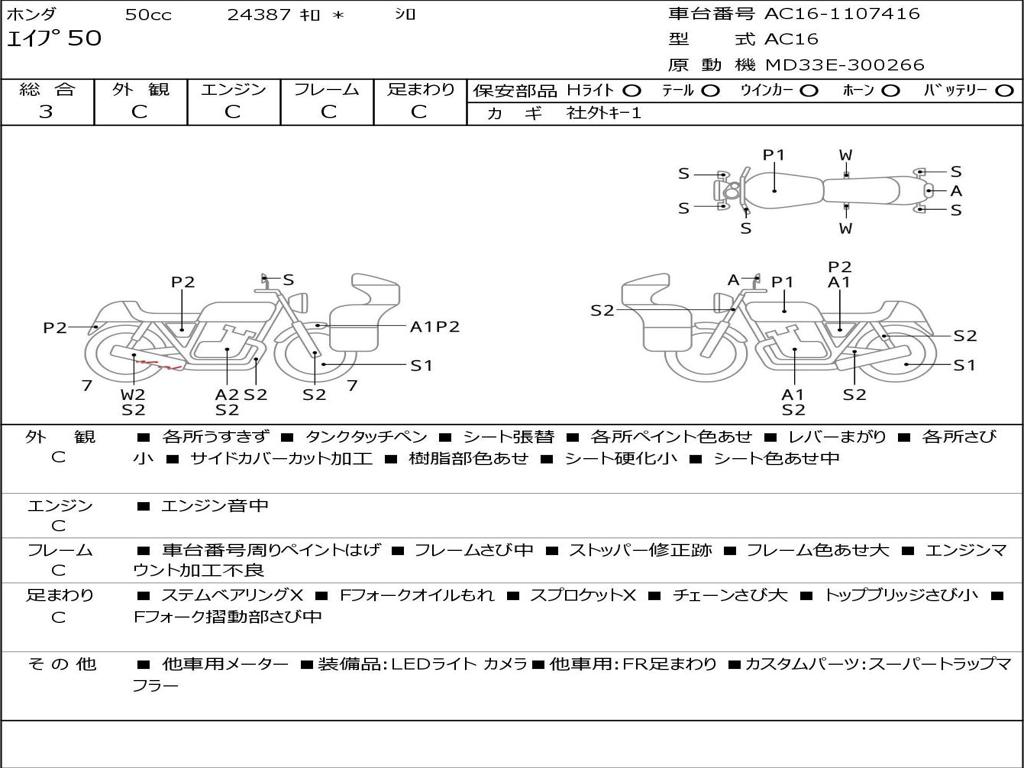 | Номер рамы / VIN | AC16-1107416 |