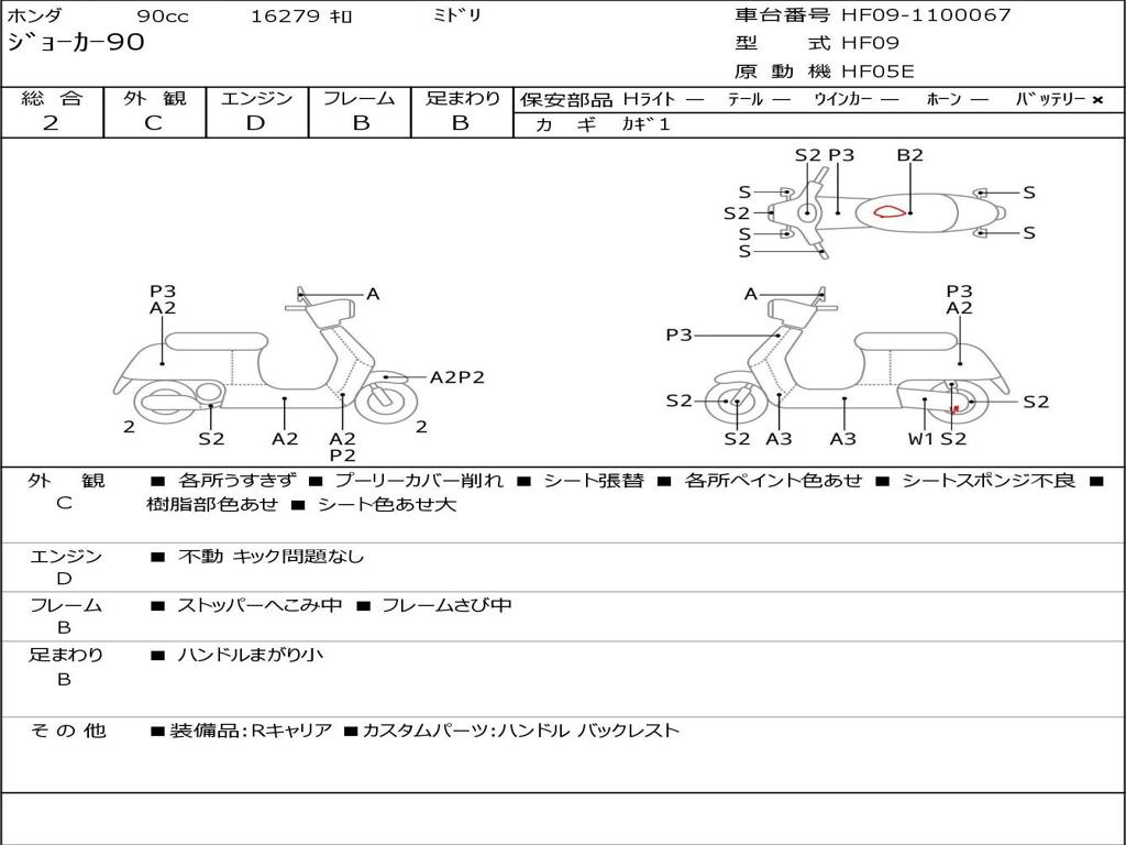 | Номер рамы / VIN | HF09-1100067 |