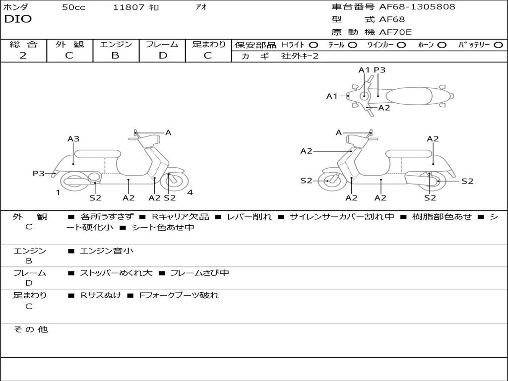 | Номер рамы / VIN | AF68-1305808 |