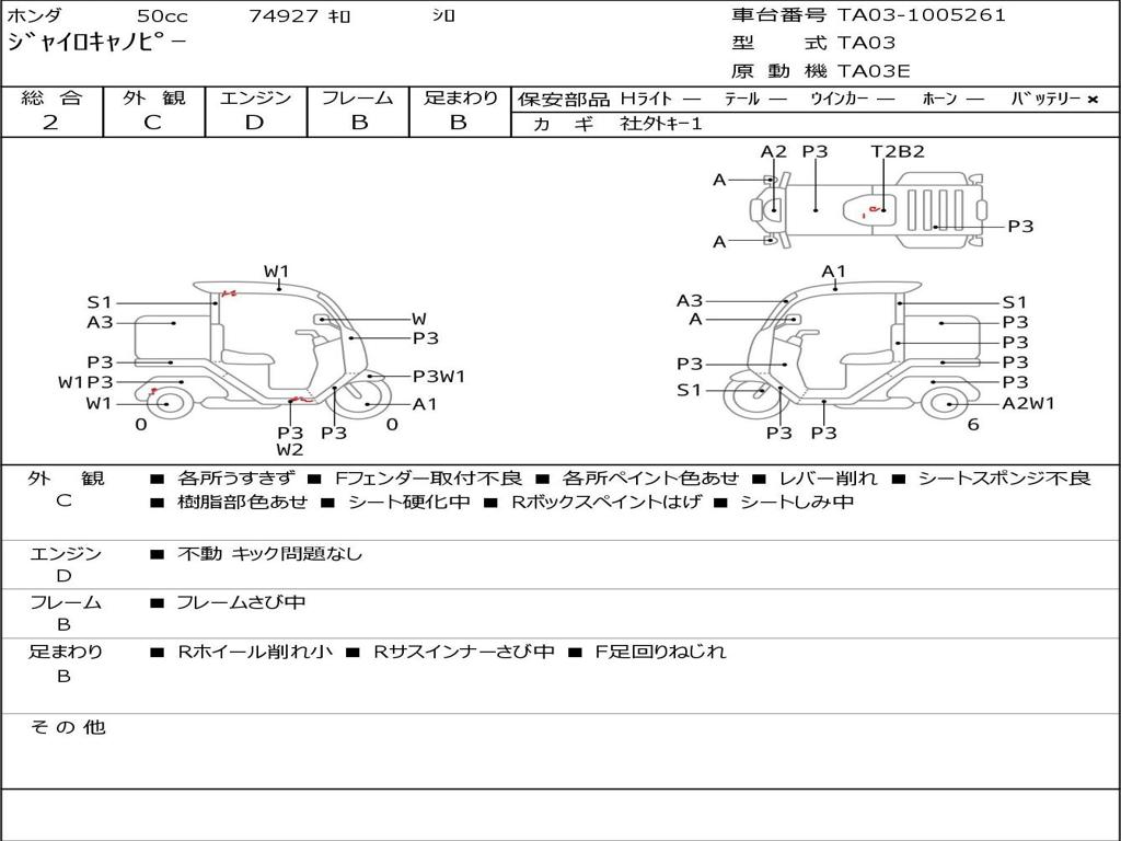 | Номер рамы / VIN | TA03-1005261 |
