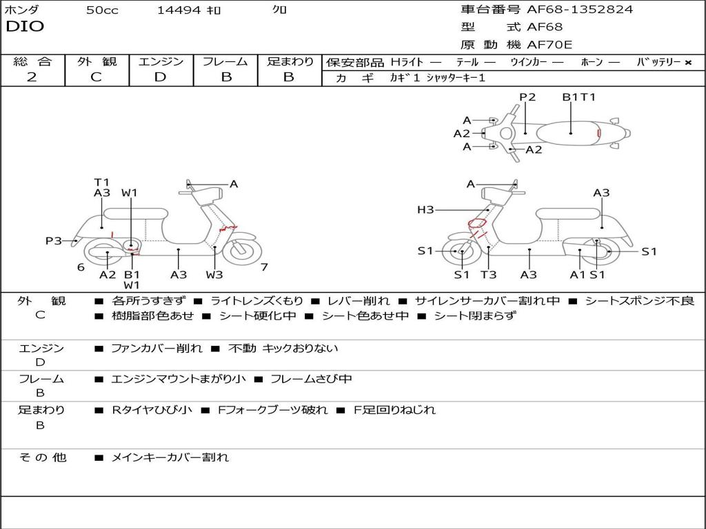 | Номер рамы / VIN | AF68-1352824 |