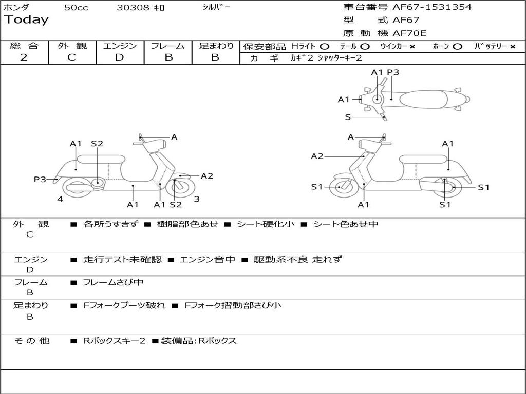 | Номер рамы / VIN | AF67-1531354 |