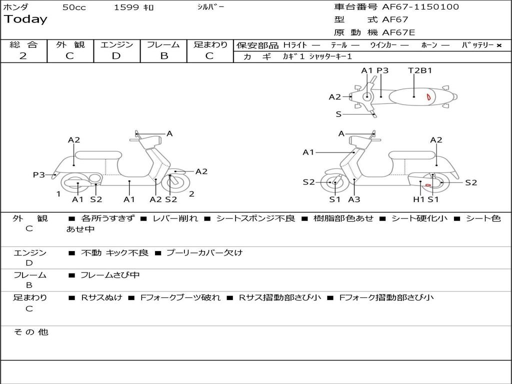 | Номер рамы / VIN | AF67-1150100 |