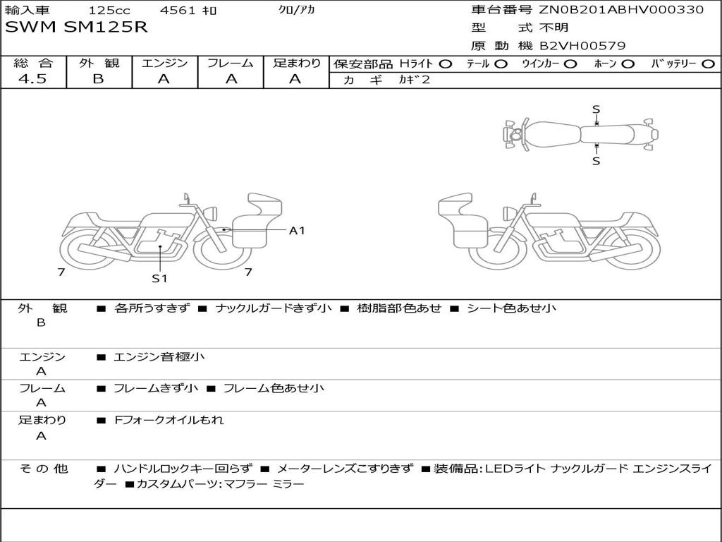 | Номер рамы / VIN | ZN0B201ABHV000330 |