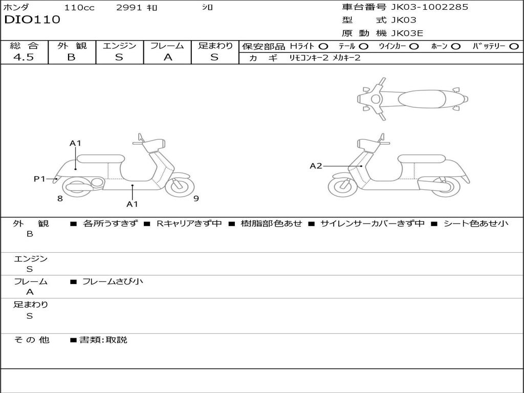 | Номер рамы / VIN | JK03-1002285 |